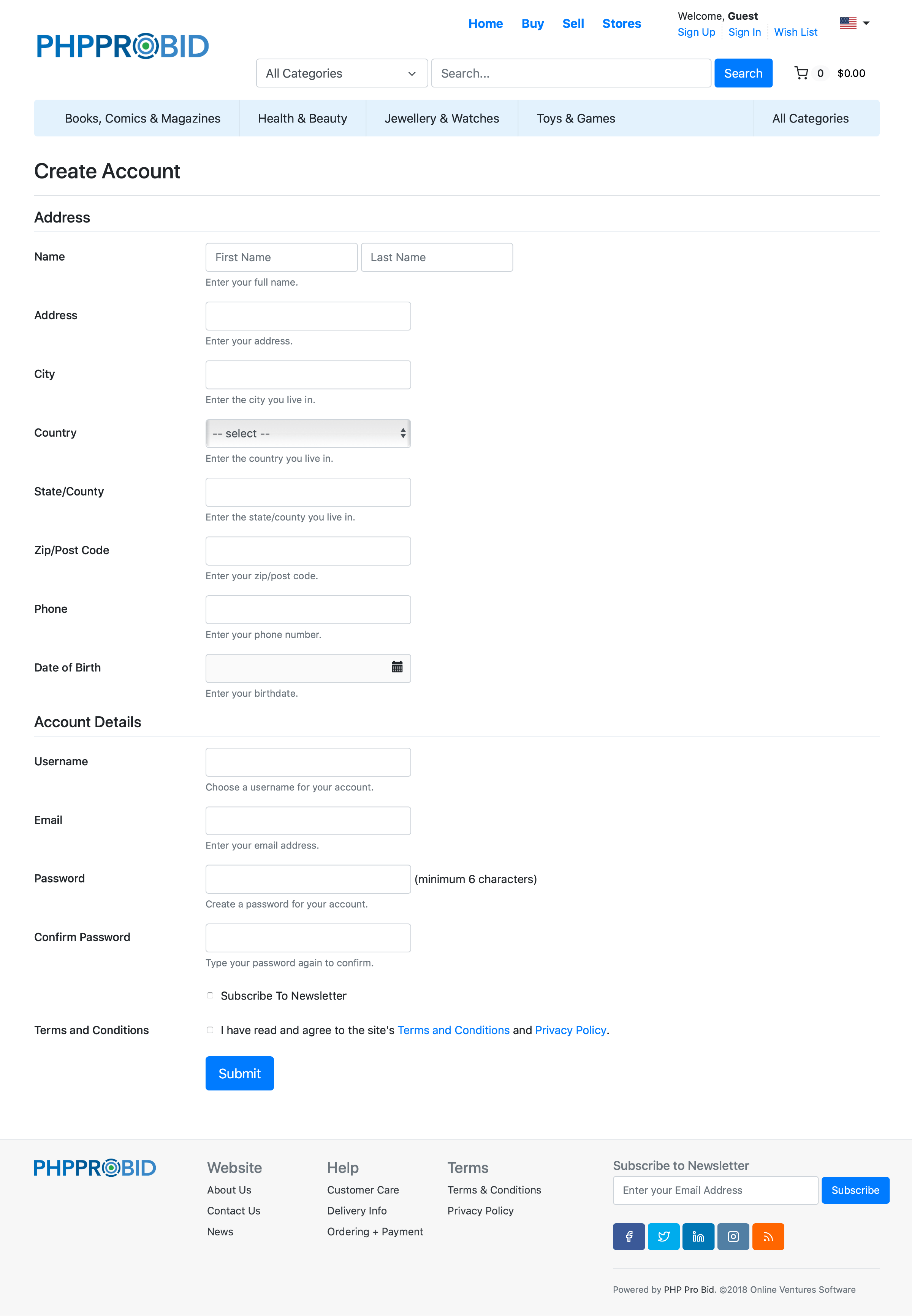 Note: Users that selected Quick Registration must also, before posting or purchasing items, complete the address field.