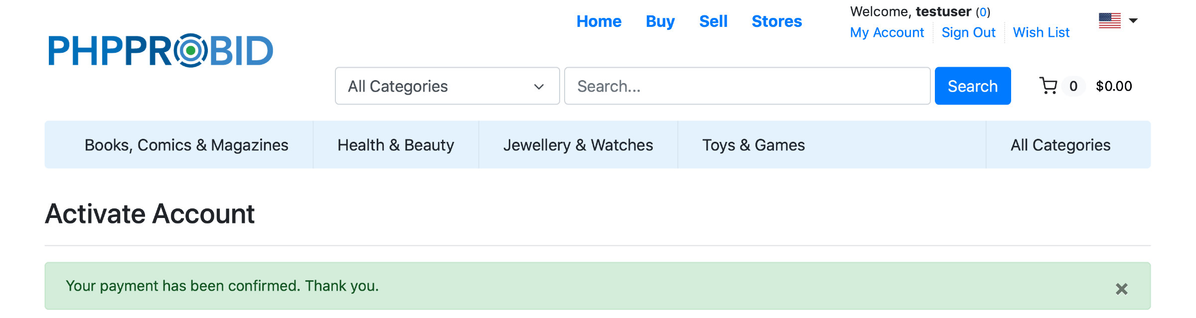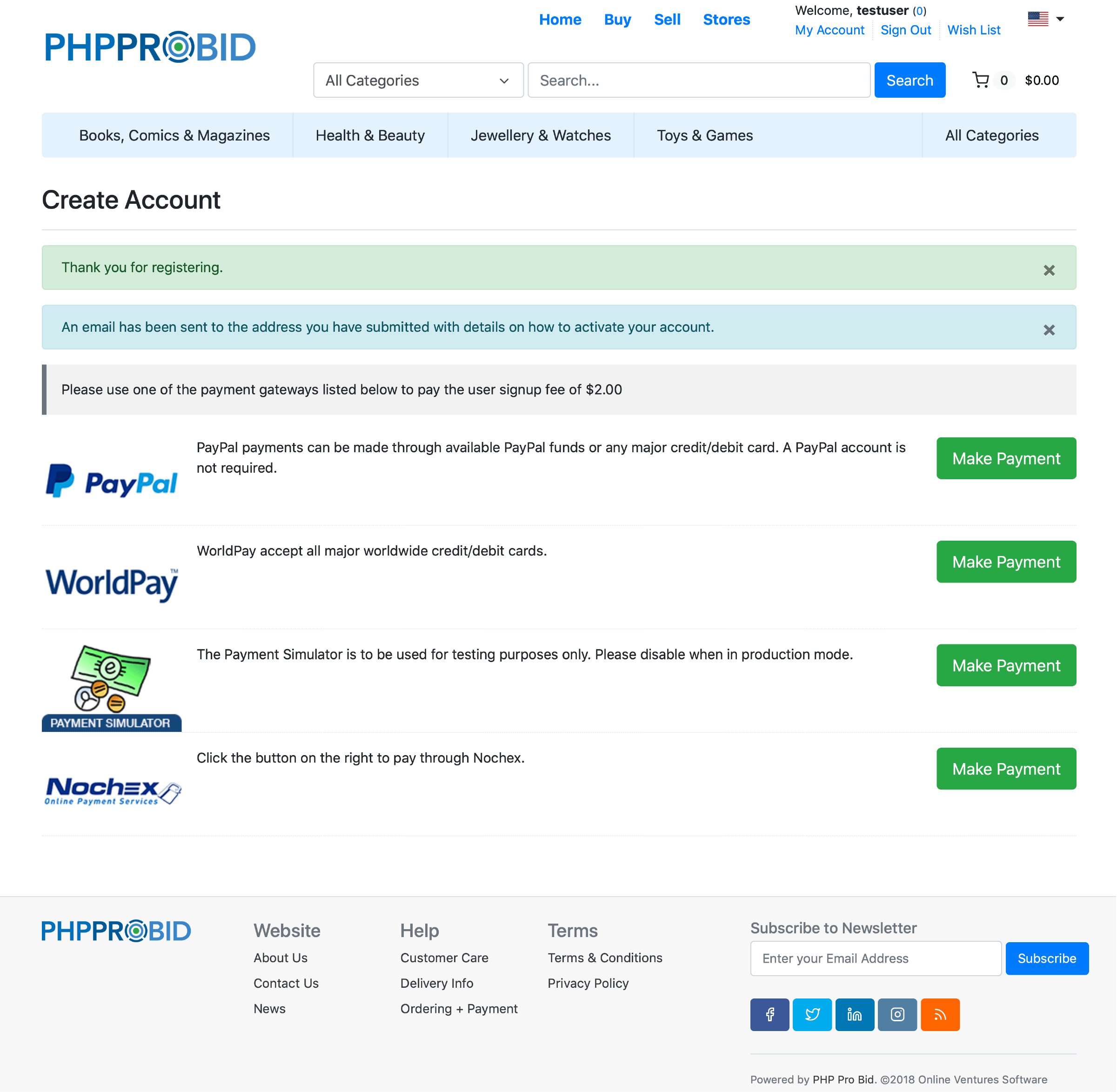 Pay the signup fee with your preferred payment gateway and you'll be displayed the following message: