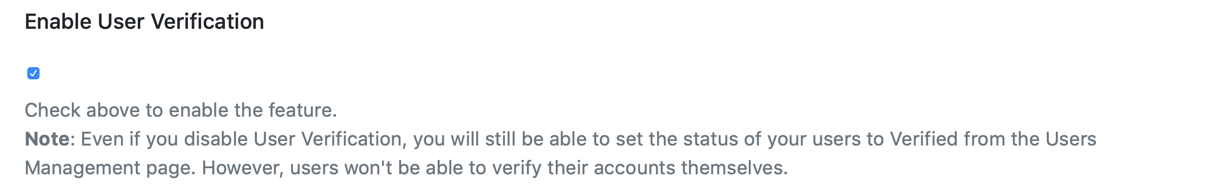Important: When User Verification is disabled, admins can set user status to verified from the Users Management menu (Admin Control Panel -> Users -> Site Users).