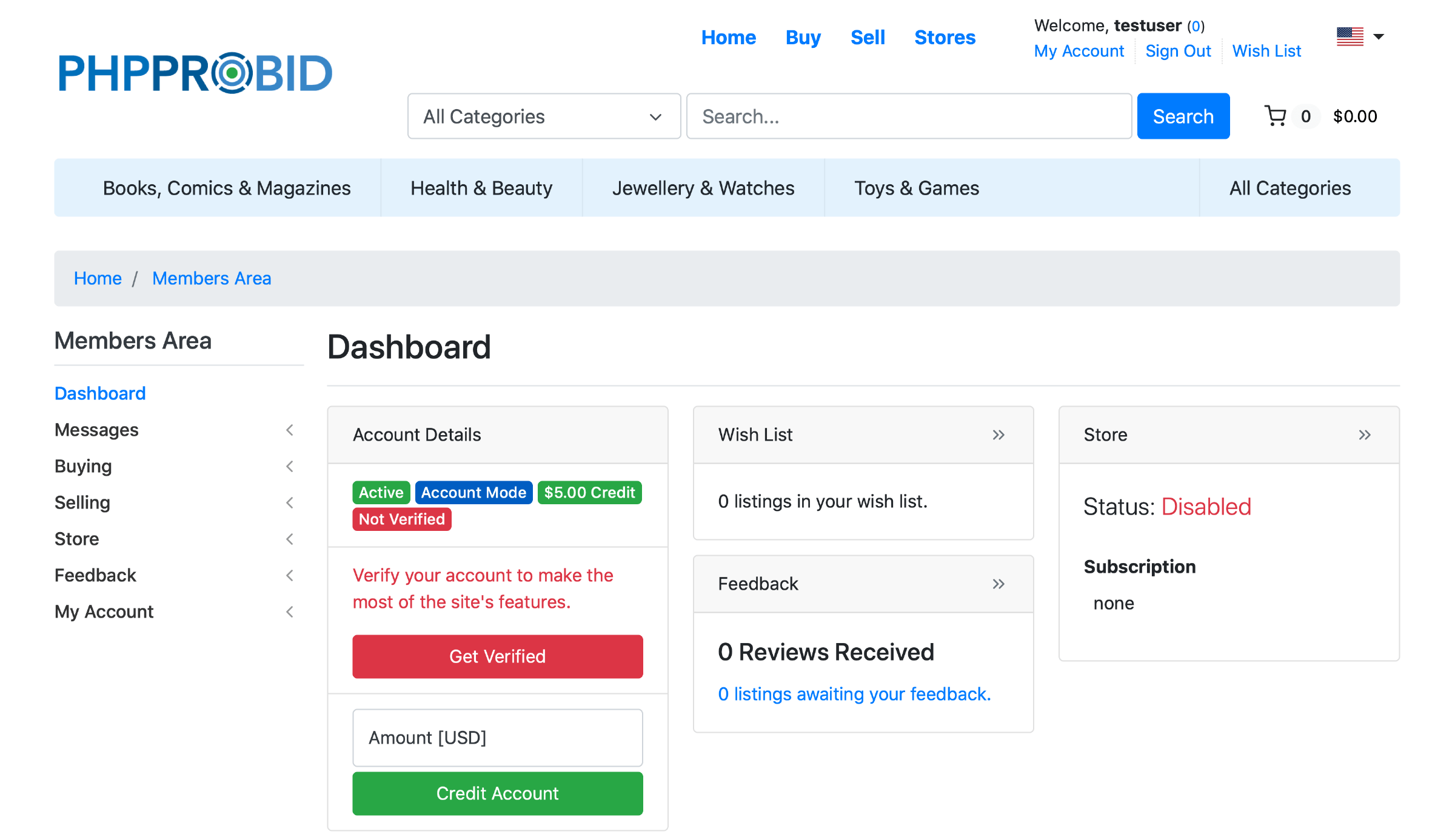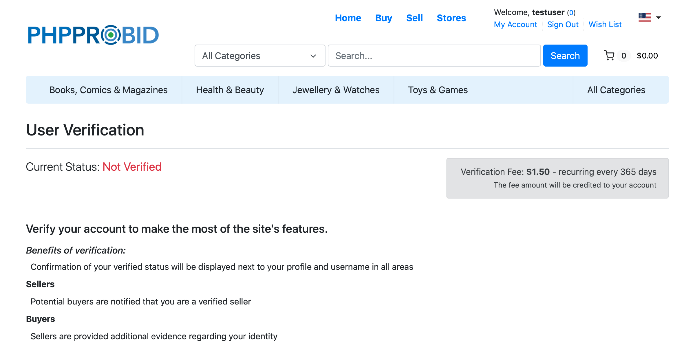 User Verification ensures that users provide accurate information. When enabled, users will have to provide a valid email address, otherwise they won't be able to list items. Admins can also set up a one-time or recurring verification fee that can be credited, at a later date, to the user's account.