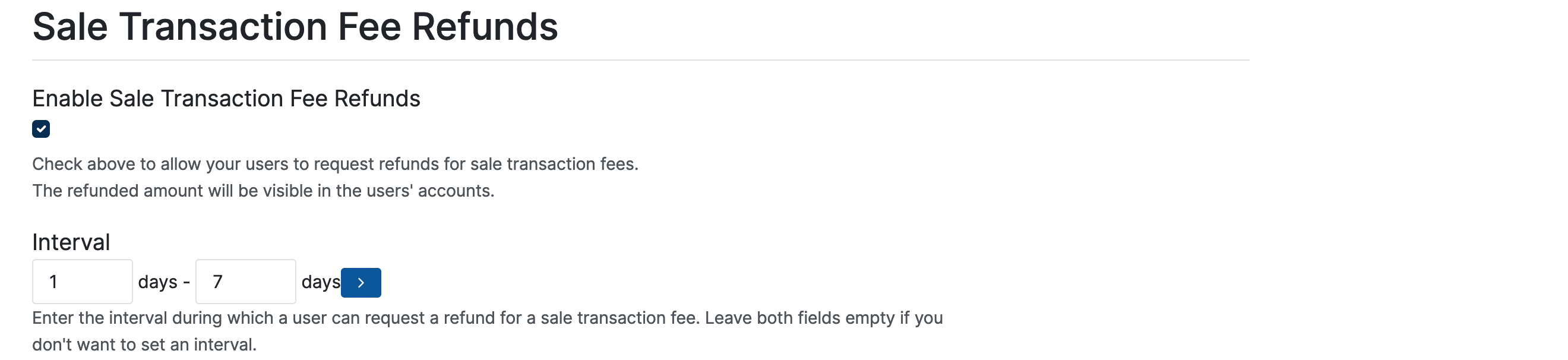 From the Sale Transaction Fee Refunds menu (Admin Control Panel -> Settings -> Listings Settings -> Auctions & Products -> Sale Transaction Fee Refunds):