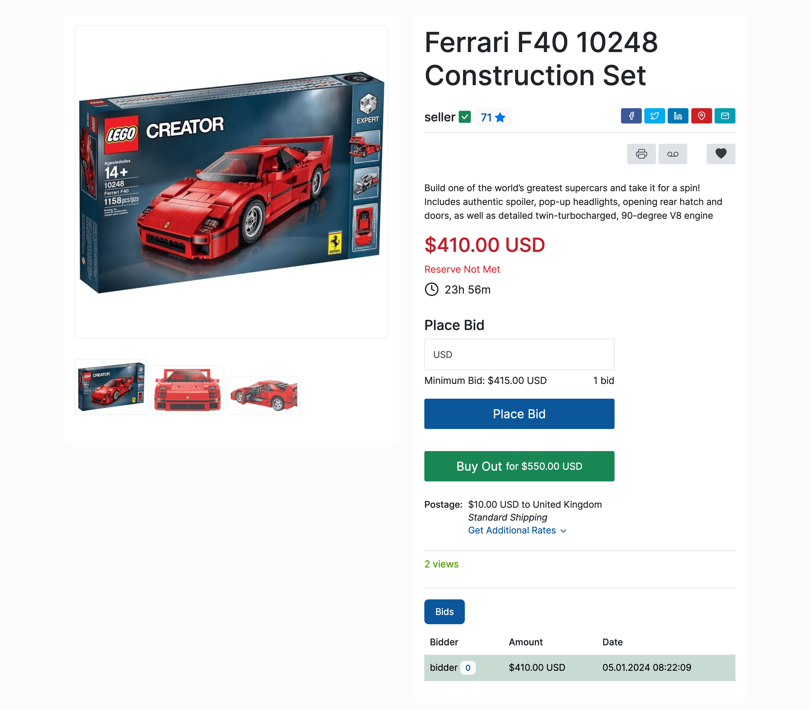 Note: If a bid does not match the Reserve Price (red numbers in the caption above) the auction will continue as set until reaching the Reserve Price or any price above it.