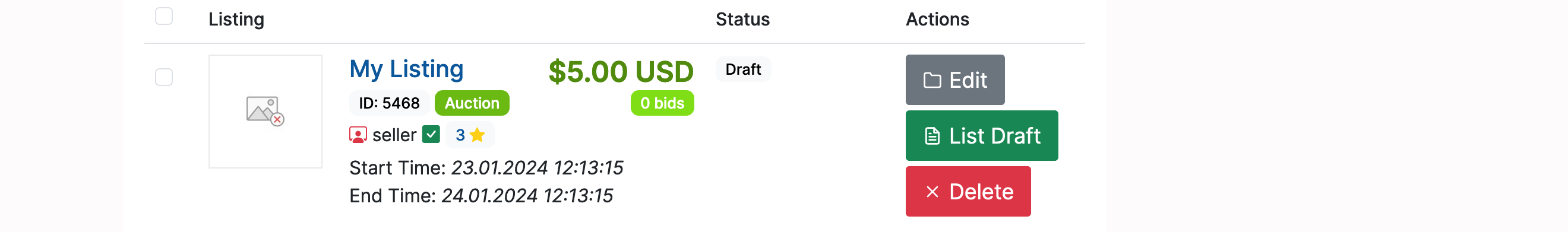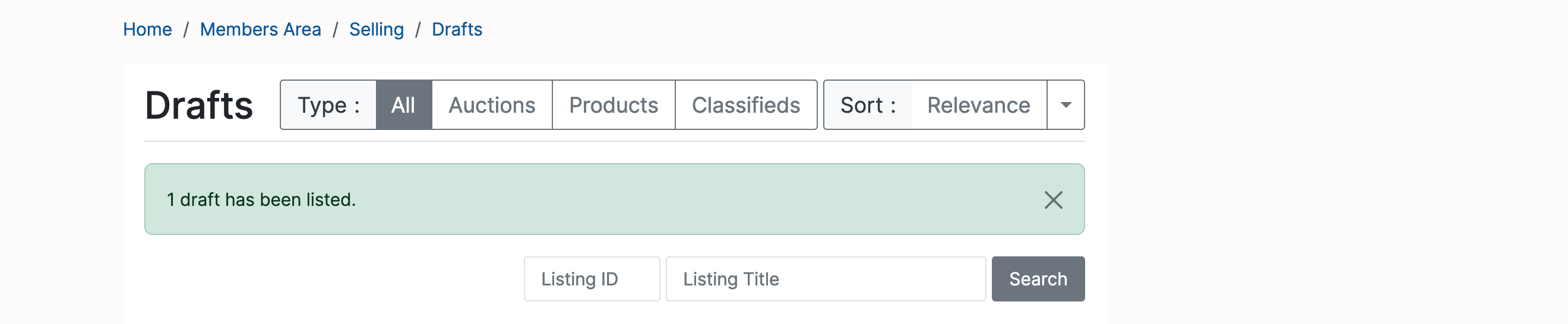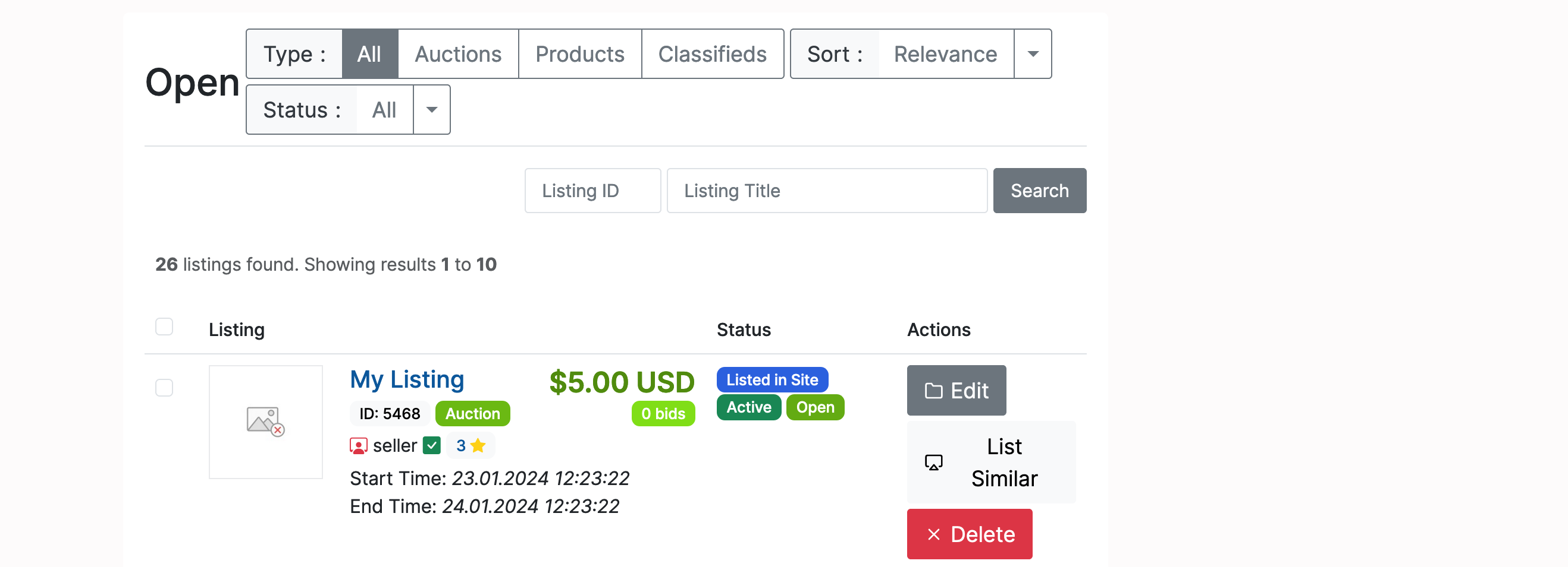 The listed item(s) will be available for viewing and editing in the Open (Home -> Members Area -> Selling -> Open) section: