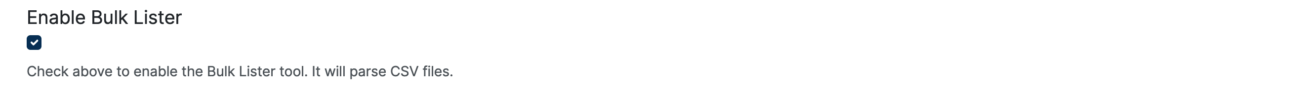 If checked, enables the bulk lister tool. The bulk lister will parse CSV files.