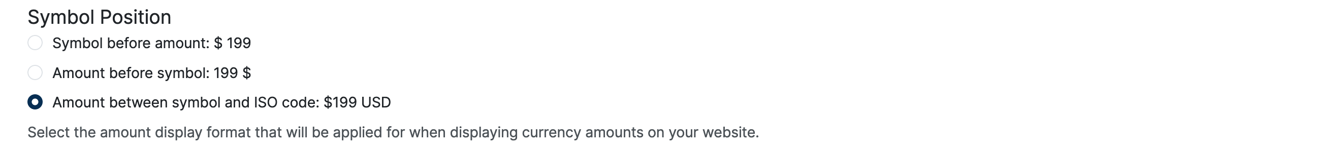 Select, from the Currency Settings menu (Admin Control Panel -> Listings -> Settings -> Currencies):