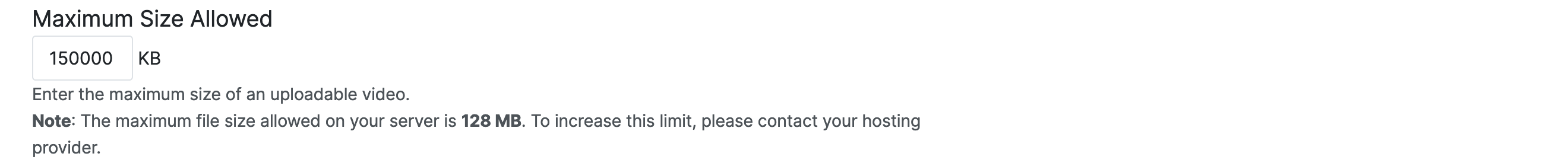 Note: The caption above is an example. The actual maximum size of an uploaded file will vary depending on the hosting provider.