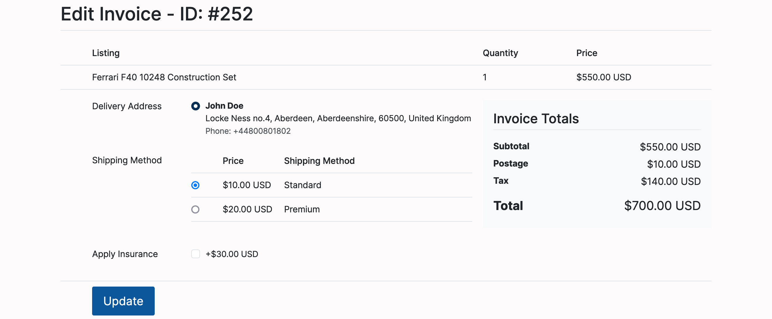 In addition, from the Purchases menu (Home -> Members Area -> Buying -> Purchases), buyers can edit the following shipping options (only if the invoice is Unpaid).
