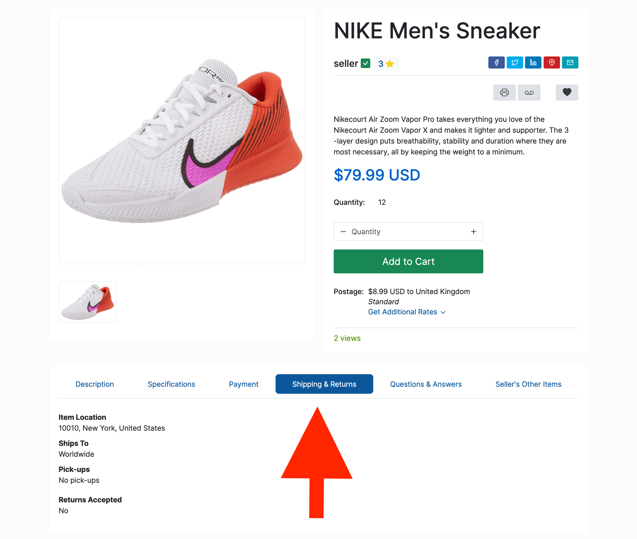 Browse the listing's Shipping & Returns menu (scroll down in the item description page) for full shipping and returns details: