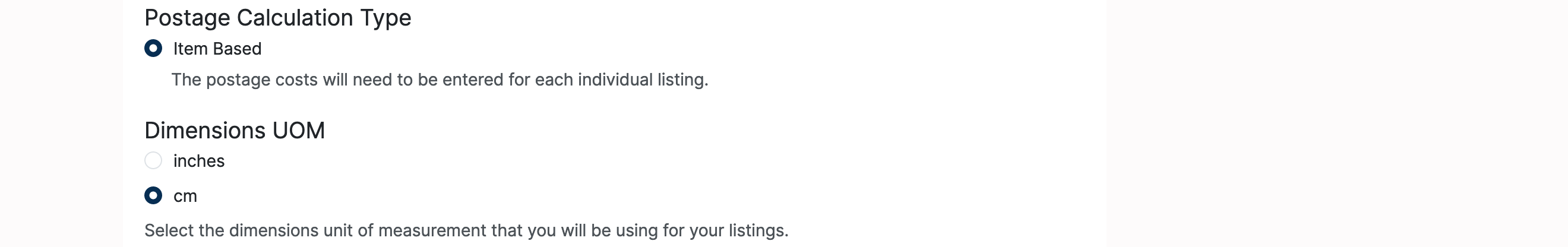 Enter postage costs for each listing and select the unit of measurement that will be applied across listings.