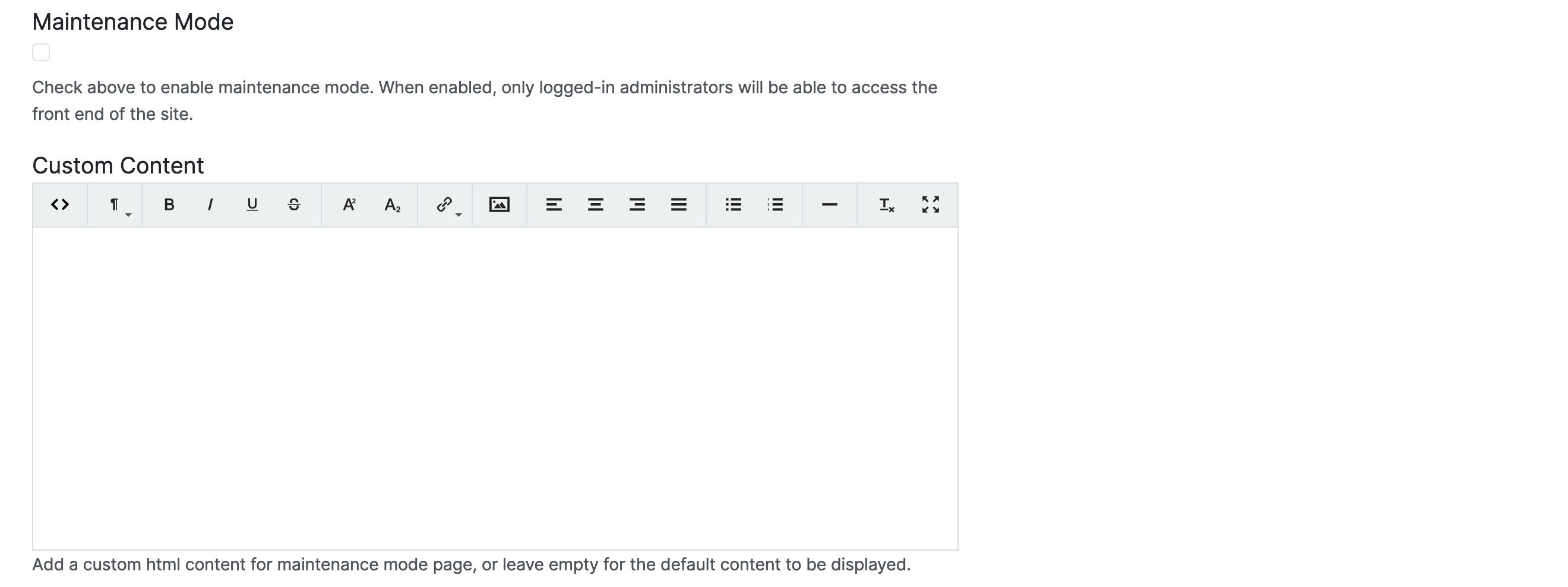 After enabling the feature you can add the Custom Content that will be displayed to site visitors.