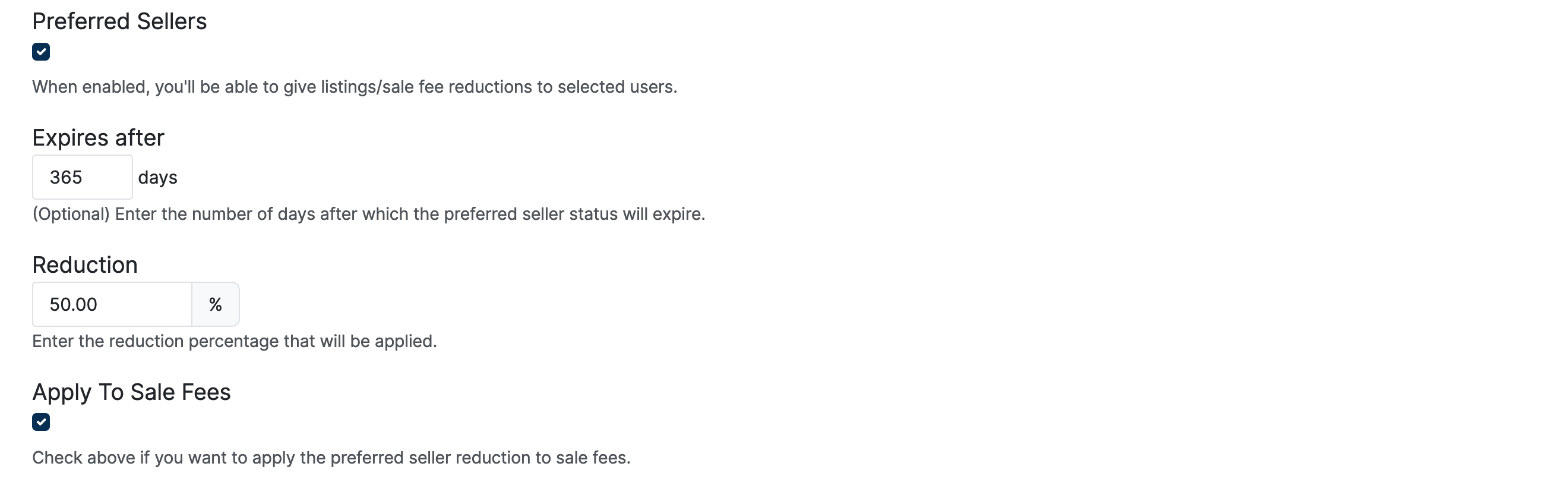 If enabled, the admin can give certain users listing / sale fee reductions.