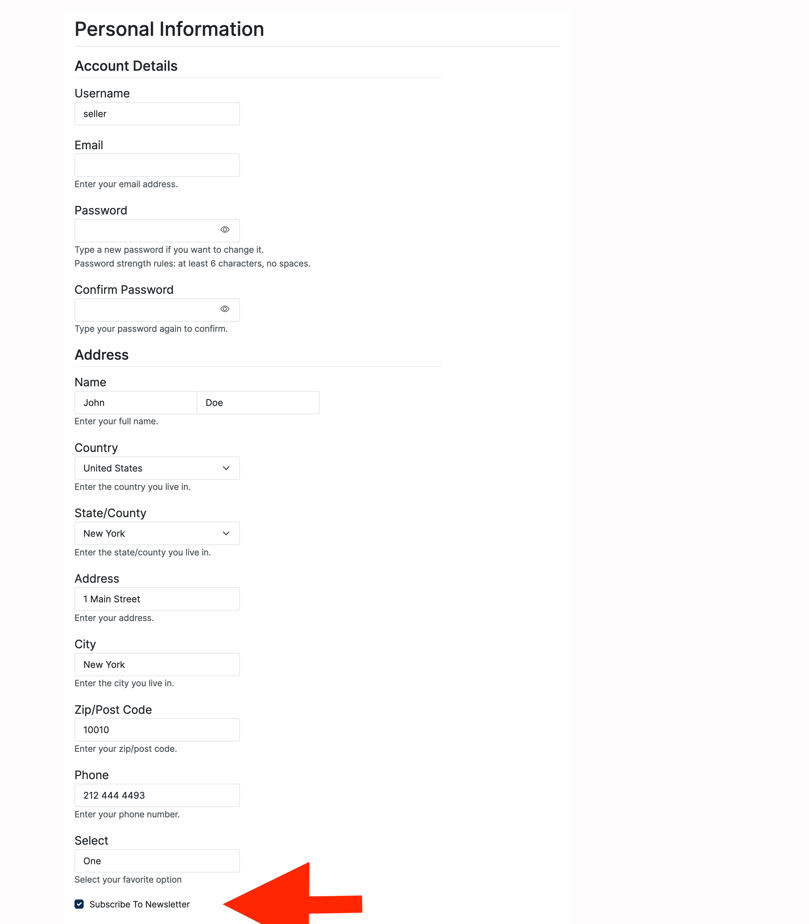 Note: Users will have the option to subscribe to the newsletter when registering or when editing their personal information page.
