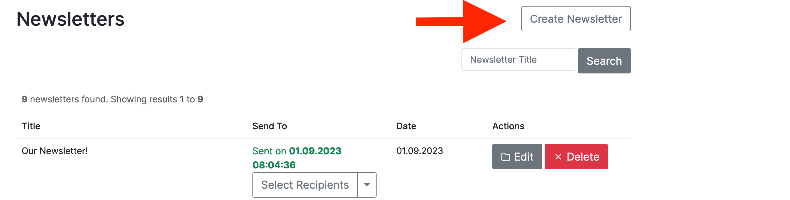 Click on Create Newsletter to send users promotions and updates.
