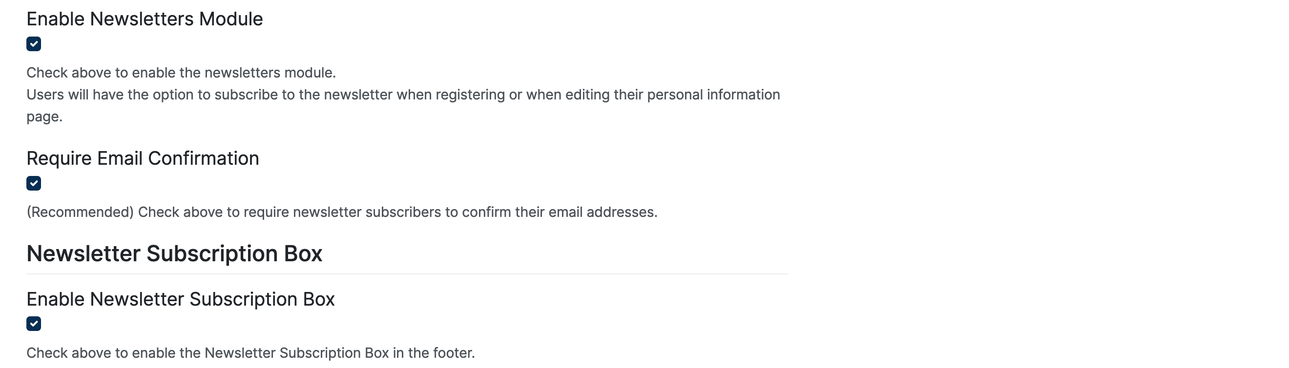 (Recommended) Check the above to require newsletter subscribers to confirm their email addresses.